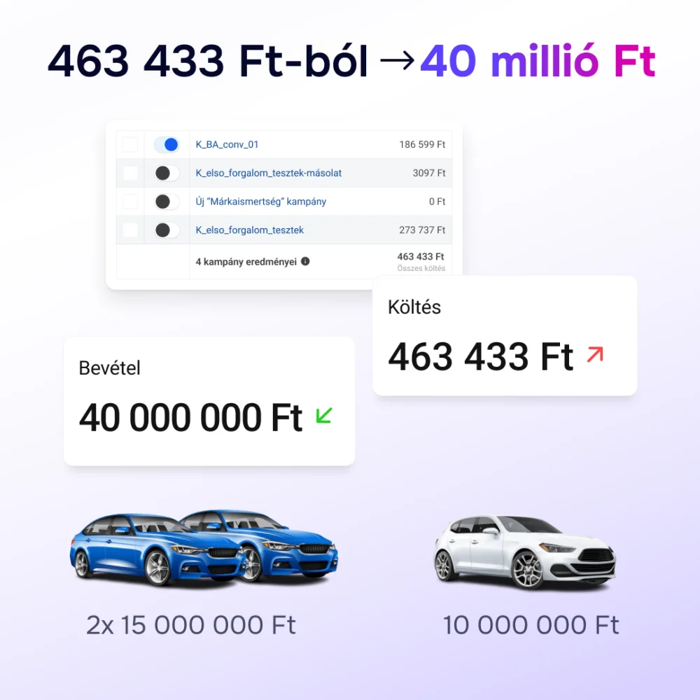 Amikor elindítottuk a videós hirdetéseit, akkor 2 hét alatt sokszorosan lekörözték a korábbi, képes hirdetéseket.